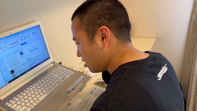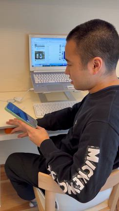矛盾しているものをぶらさげている息子