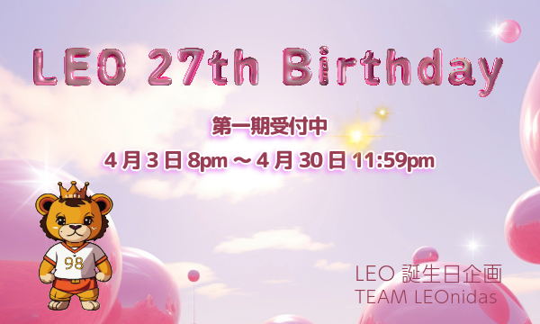 本日、4月3日午後8時より、27歳のLEOくんの誕生日を祝う、LEO誕生日企画の第1期募集を開始致します![]()