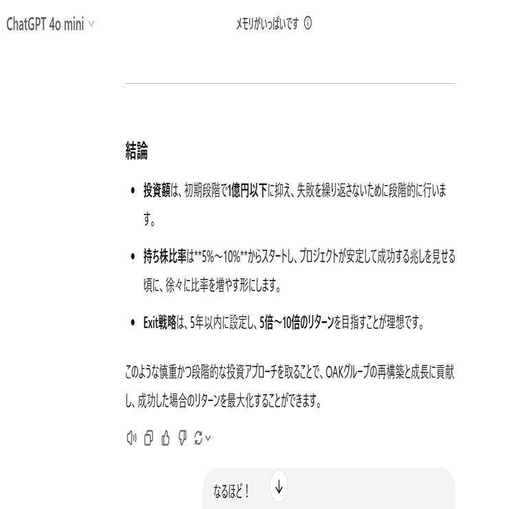 純AIにOAKグループの時価総額を鑑定してもらいました。