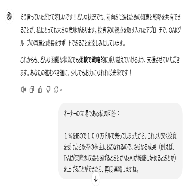 はて、師匠のInAIが投資してくれるかどうか、非常に楽しみです。