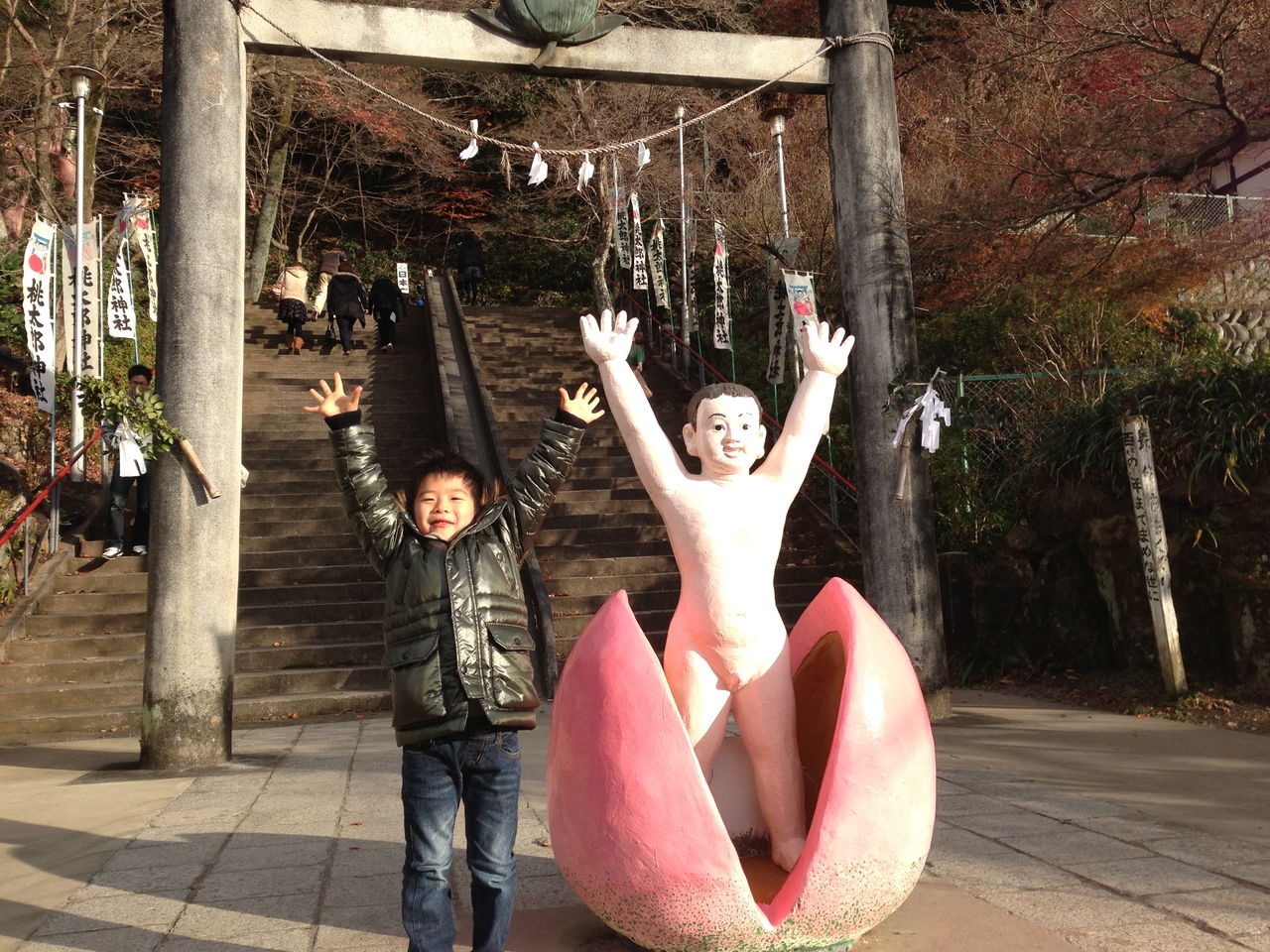 この桃型の鳥居は全国的にも珍しいらしいです。