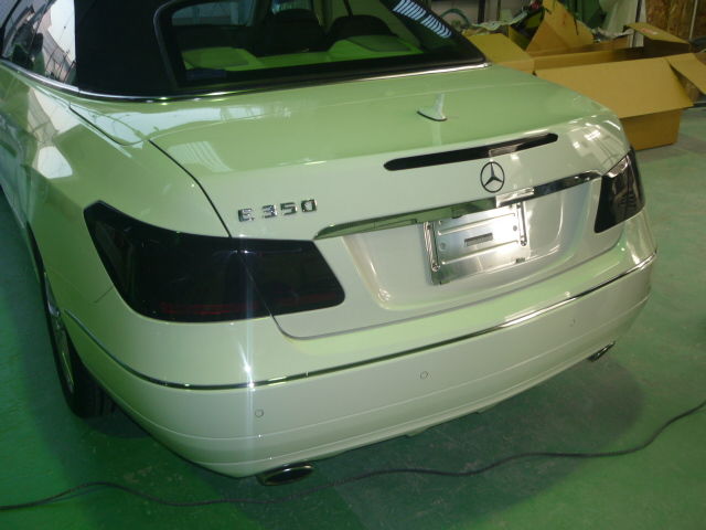E350ベンツ 皆さんこんにちは お久しブリーフ笑 なかなか更新が出来ず申し訳ありません 随分季節は進みましたね 今回の作業はローダウンとマッドブラック塗装です 珍しくオープンカーが入庫致しました 塗装箇所はグリル・エンブレム・テールランプです 綺麗な雰囲気から渋いベンツに早替わり オーナーさんのダンディーさにも磨きがかかりました この季節オープンカーはいいですね~ 店長のボヤキでした