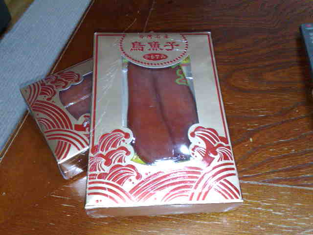 なんで烏魚子かって?実は昔に親父が台湾に単身赴任していたころによく持って帰ってきてたときにおいしくて今でもたまに食べたくなってて。。。それをたまたまPeterに話したら『だったら送るよ』と。