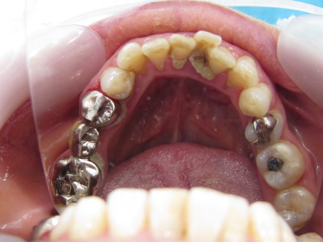 特に下の奥歯は少し口を開けただけでも銀歯が見えてしまいます