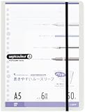 中紙はL1201、「ルーズリーフといえば」の双璧をなす「書きやすいルーズリーフ」のB5、6mm罫線ですね。書きやすいルーズリーフ B5 メモリ入6mm罫 26穴 36行 100枚 L1201H/マルマン
