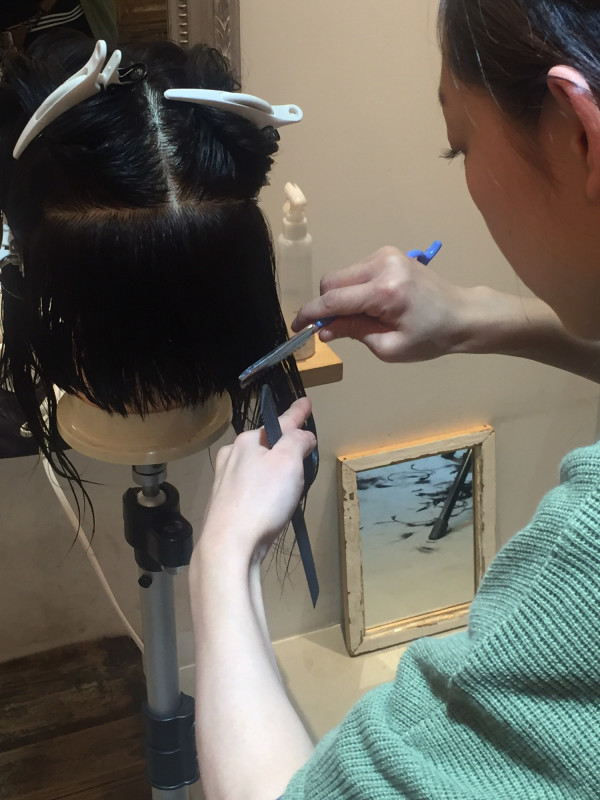 カットと言っても、ハサミではなくて、レザー(カミソリ)のカットです。