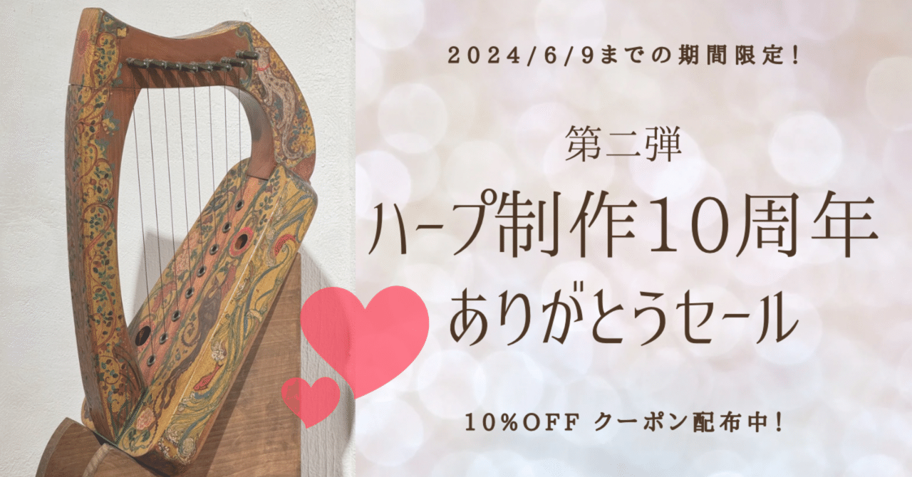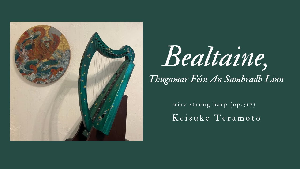 私が制作している様々な種類の金属弦ハープで、夏至にちなんだアイルランドの伝統音楽等を奏でます。