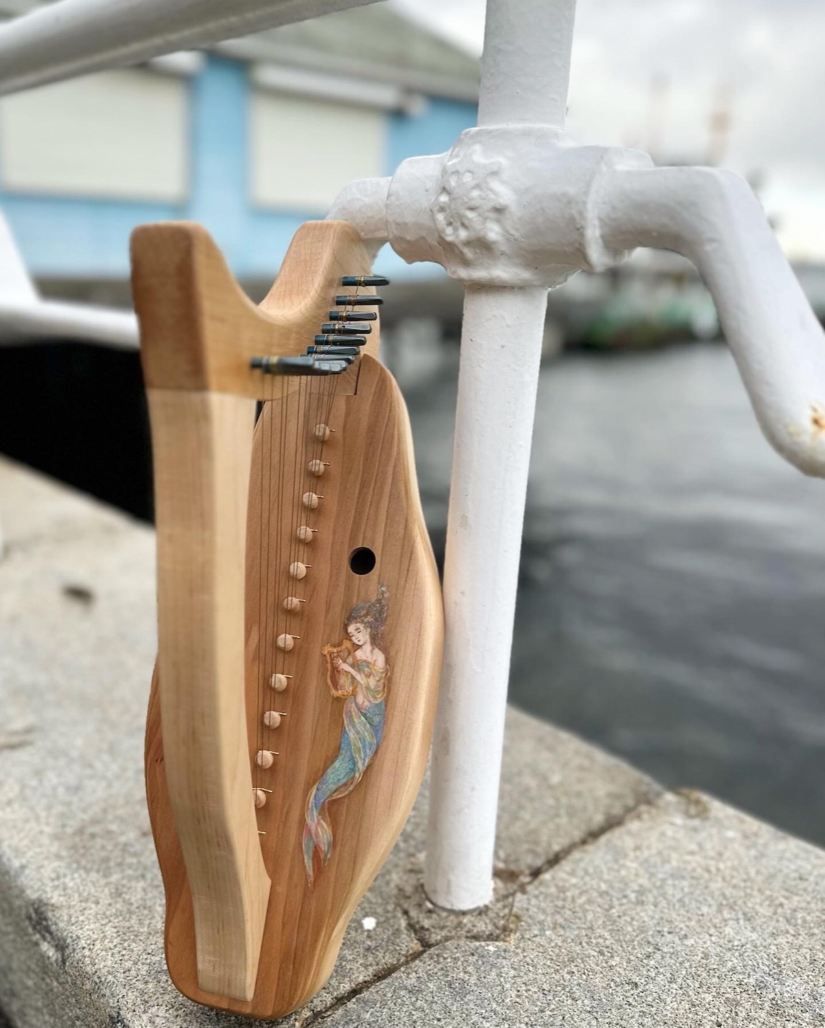 香港の方からご依頼いただいた2列弦のカーボン弦ハープが完成しました!日本画家、中井智子が妖精と小鳥の絵付けを施して大変美しい楽器に仕上がりました。