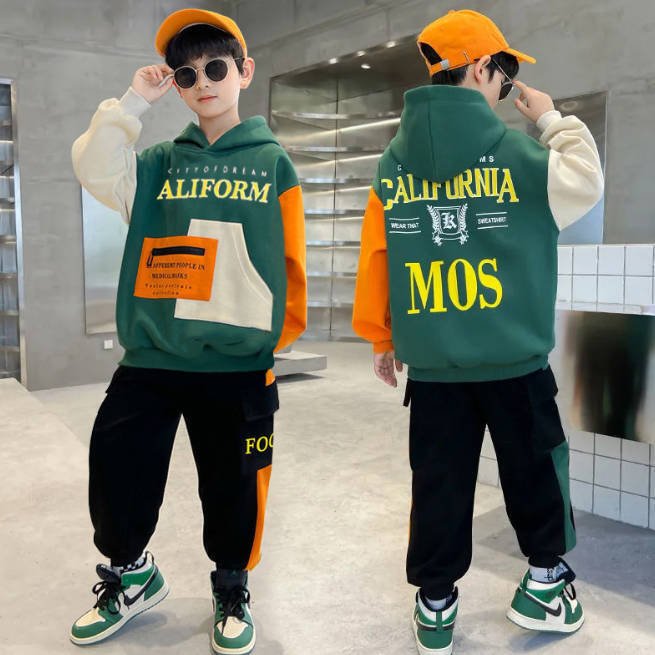このフード付きスウェットシャツとパンツのセットは、6歳から15歳の男の子にぴったりのアイテムです。おしゃれで機能性も抜群なので、ぜひチェックしてみてください!これからの季節に活躍すること間違いなしです。