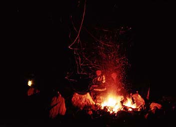 焚火を囲む
