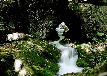 小気味良い音の正体は岩穴から流れ出す豊富な湧水である。直径1Mの岩窟から清水が迸る。ここの水は実に美味しい。大量に持ち帰りたい欲求にかられて一度挑戦したが、往復2時間はつらいものがあったのを覚えている。ここまで来れば取水口は目と鼻の先である。