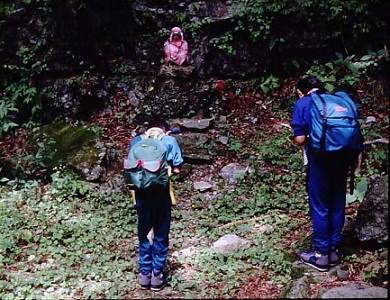 帰りには又,よりますと言って子供達は笑い、18番札所を後にする。この辺の山道は遠望がきくわけでもなく。変化がなく退屈であるが、嫌気が差す頃涼しい沢音が聞こえてくる。冷気に辺りが煙る。