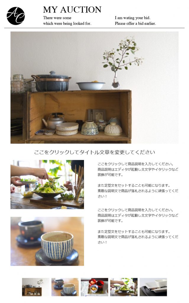 テンプる!2では、HTML言語やイラストレイター・フォトショップといった専門的なソフトを利用しなくても、だれでも簡単におしゃれなオークションテンプレートを作成できます。
