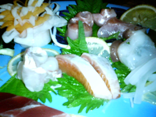 おまけ。 誕生日というのを聞き付けた近所の居酒屋の子から お造り盛り合わせ頂きました。 そしたら、たまたまそこで働いてる子と誕生日が一緒やったって! 何たる偶然。 もうこうなると必然やで。 さらに後日、シュークリームとピザ(写真撮れなかった(T_T)シクシク) まで頂きました。 最高ですッ( ̄ー ̄)v ブイ!