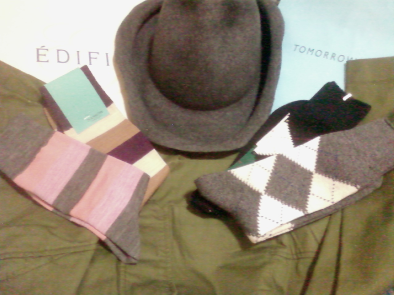 買い物。。ナベさん、タブオさんと国立博物館から戻った後、買い物に繰り出した!!最近、なかなか購買意欲がわかない中今日は「EDIFICE」のカーゴパンツと「TOMORROWLAND」のソックスと「COMME des GARCONS」のハットを購入!!なんか久し振りにまともな買い物したなぁ~。。