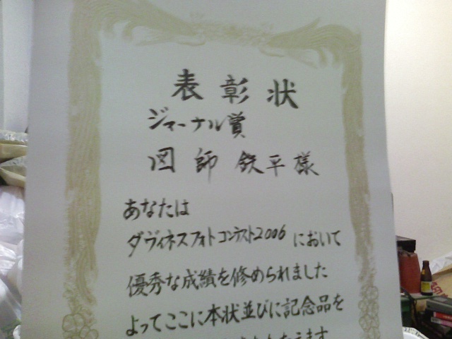 受賞。。ダヴィネスというイタリアの美容メーカーのフォトコンテストにZUSHIの作品をエントリーしたら賞を頂きました~~~~!!今日、受賞式があって、賞状、クリスタルのトロフィー、賞品を頂きました♪♪♪♪ナント!!!頂いた賞品が……i-pod nano だったんです☆☆☆☆☆やったぁ~~~~!!!!かなり、嬉しい~~~~!!-----
