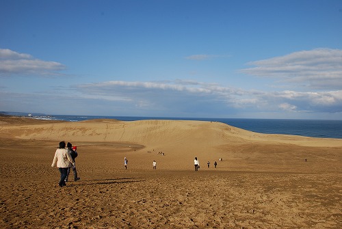 砂!砂!砂!。。鳥取砂丘に足を伸ばしてみました!!展望台から見た砂丘。。若干、期待外れ的な感じ・・・・。。。。がっ!!実際に砂丘の中に踏み込むと、凄かった!!!どうですか!?伝わりますかねぇ??? このスケールは・・・。。