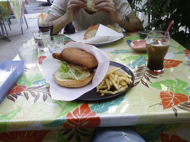 先輩はサンドイッチを、ZUSHIはフィッシュバーガーを注文