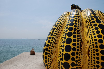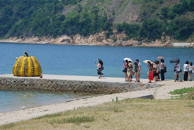 ビーチにあるのは黄色い「南瓜」草間弥生