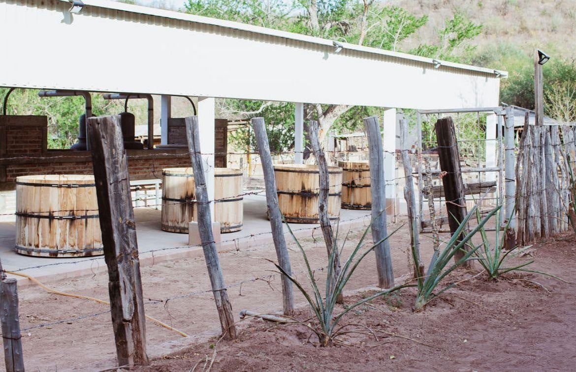 3日間蒸し焼きにしたアガベは人の手で1つ1つ取り出され、その場で鎌などを用いて小さく粉砕します。その後木製の樽で現地の井戸水と共に酵母は加えず自然の力で発酵、銅製の蒸留器で2度の蒸留を経て、我々の元に届けられます。