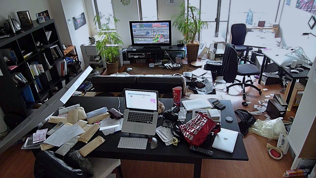 家に戻ってきたら鏡は倒れ、モノが散乱し、プリンタが落ちて
