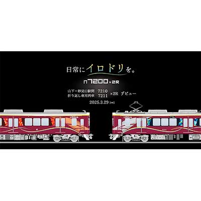 能勢電鉄では、山下~妙見口駅間の折り返し専用列車として7200系2両編成車を2編成導入します。