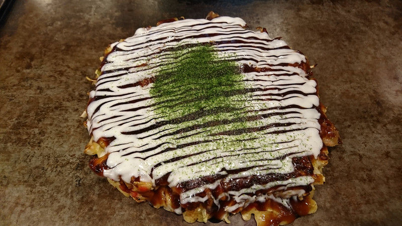 ホテルにチェックイン後、隣のお好み焼き店で軽く飯を食べて