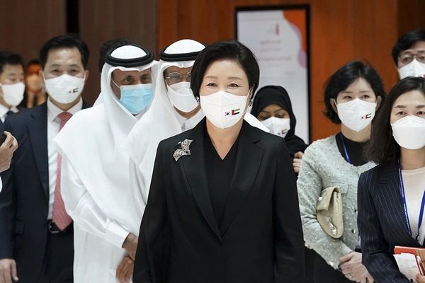 2022年1月16日、ドバイを訪問し、韓UAE知識文化交流式に出席した金正淑夫人(韓国大統領府提供)