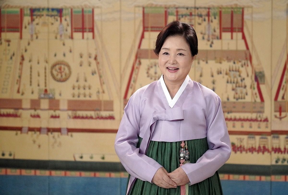 2021年12月16日、2021韓流祭り「K-healing Online Festival」に際してオンラインで挨拶する金正淑夫人(韓国大統領府提供)