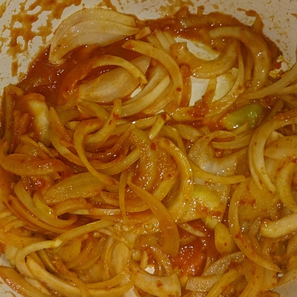 玉葱をいれ、しんなりしたらトマトピューレをいれる。