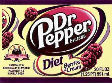 そして、人工甘味料による味付けもここに極まれり、「Diet Dr.Pepper Berries&Cream」