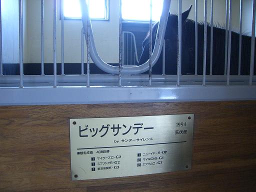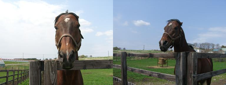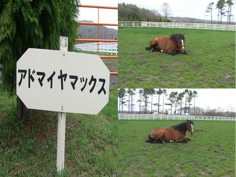 本日は、牧場訪問日。静内まで戻り「しずない桜まつり 」を開催中の二十間道路 で一休みし、「コスモバルク」(戦績 27戦7勝・シンガポールエアラインズC弥生賞)で有名な「ビッグレッドファーム (明和)」へ。そこで迎えてくれたのは「ロサード 」(戦績 46戦6勝・オールカマー京阪杯)・「ゼンノエルシド 」(戦績 17戦6勝・マイルCS)・「アドマイヤマックス 」(戦績 21戦4勝・高松宮記念)・「タイムパラドックス 」(戦績 50戦16勝・ジャパンCダート帝王賞JBCクラシック)・「マイネルセレクト 」(戦績 16戦10勝・JBCスプリント東京盃)・「マイネルマックス 」(戦績 41戦6勝・朝日杯3歳S)と、誰もが知っている名馬達。相変わらずヤンチャな「マイネルラヴ」(戦績 23戦5勝・スプリンターS)の撮影を諦めて、次の訪問地へ……。