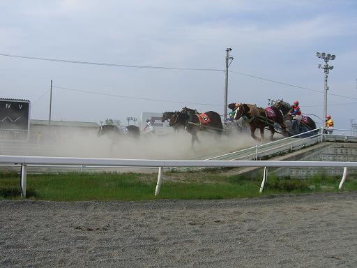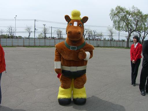 ばんえい競馬の始祖「イレネー像 」と、ばんえいマスコット「リッキー 」や、帯広市民である「リッキー 」に迎えられた荒スポは、早速、予想紙「金太郎 」他2紙を購入し、検討会に入る。序盤は、2歳戦が多く、波乱が続く。予想紙も微妙な感じ……。時より陽射しがでるものの、風が強く、水分含有率も低い(=乾いている=脚抜け悪い・重い)ので、容赦なく砂埃が舞うため、スタートからゴール まで、肉眼では捕らえにくい。寒さ凌ぎも兼ねて、スタンド内売店で帯広名物「豚丼 」を食す。甘辛いタレは好みが分かれそうだ。