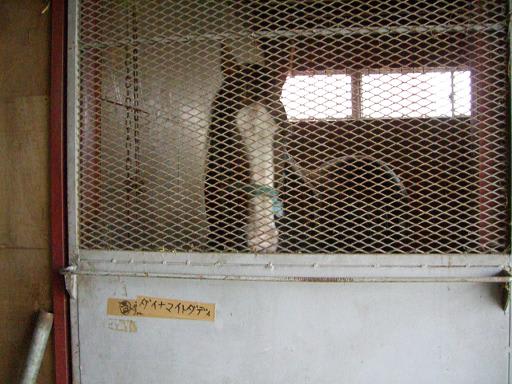 案の定、周辺をグルグル……。それらしき看板は……「帯広トレーニングセンター」……明らかにマジックで手書きされた牧場を発見。雨の雫の先をじっくり見ると、「…SHO-BOKU…」の文字が、もしや?……、車を乗り入れた先に人影を確認。どうやら厩務員さんのようだ。おそるおそる聞いてみると「競勝牧場」とのこと。雨が降っているのも忘れるくらいの感動だ。