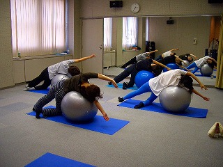 今回の内容は「上半身重点プログラム」で、バランスボールを使ったりして普段伸ばすことがない筋肉をしっかり伸ばし、骨盤周りを緩めることが目的です。