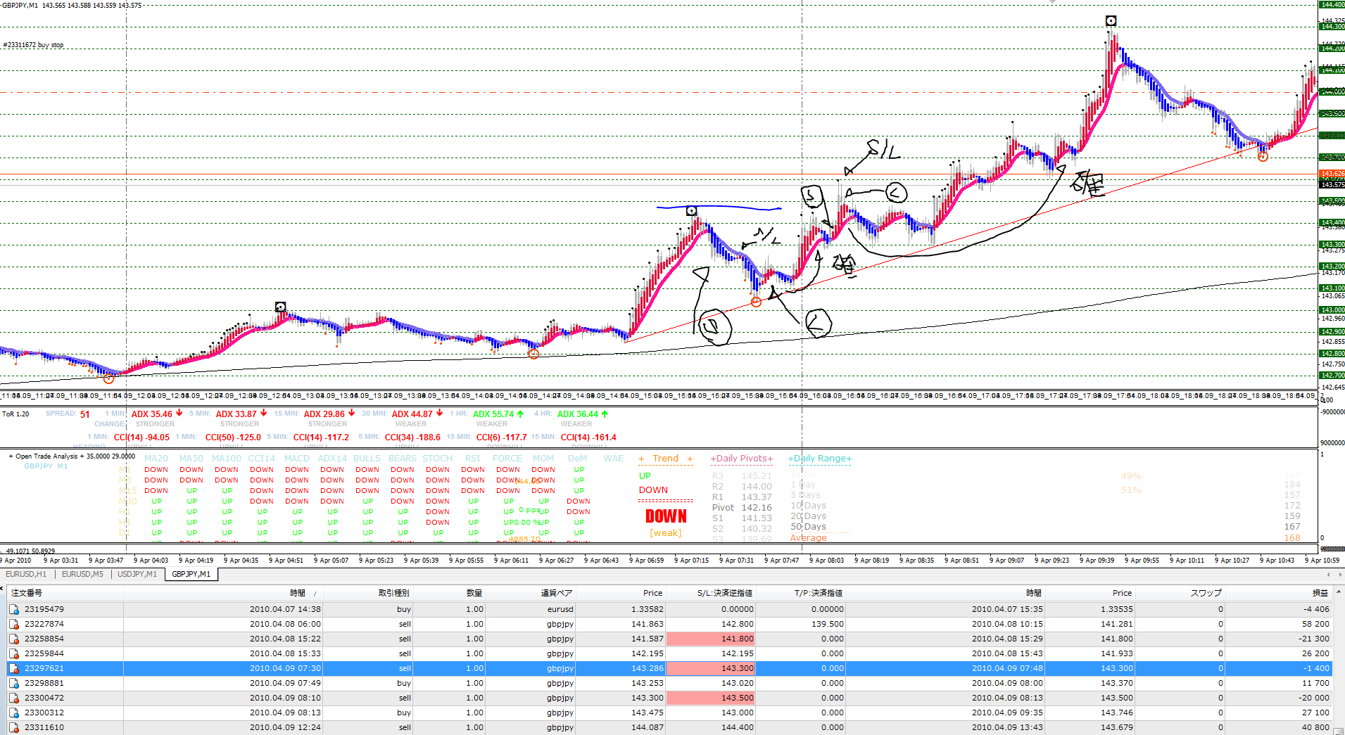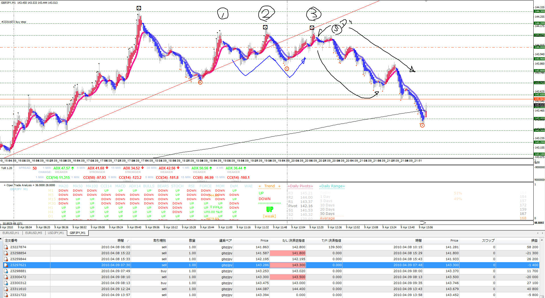 まあ、今日はダウ理論のみでも十分な感じのいい流れでした。