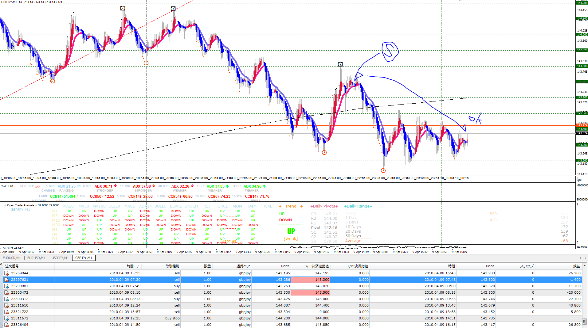 1発目のトレードは、S/Lが浅すぎてすぐに引っかかってしまった。