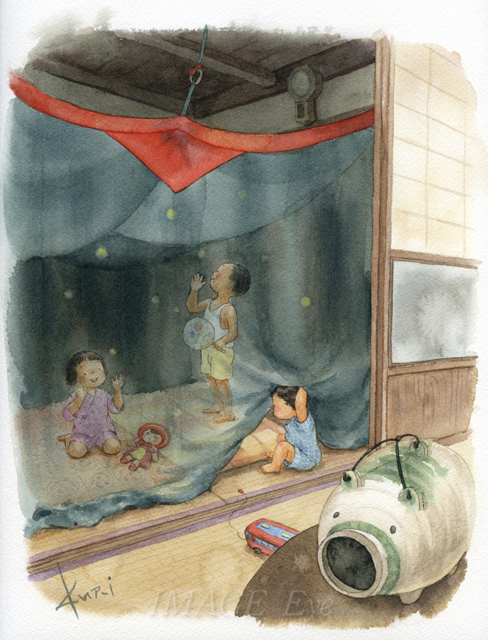 蚊取り線香と蚊帳。