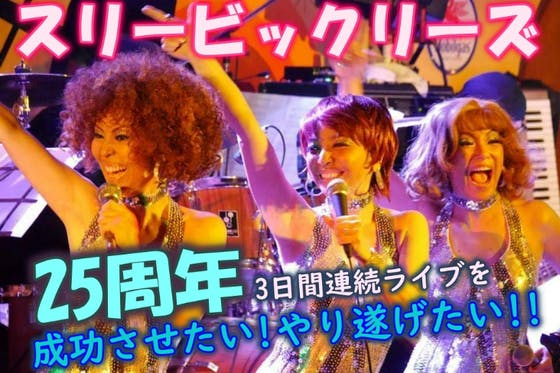 We are Soul sisiters! スリービックリーズ★25周年ライブ!今年で結成25周年の”歌って踊ってコントするDisco&ソウルユニット”「スリービックリーズ」のライブを是非皆さんで盛り上げてください。camp-fire.jp