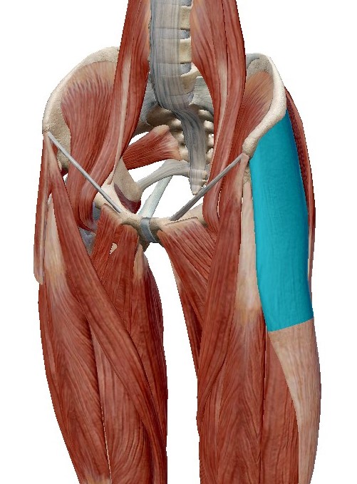 腸腰筋が硬くなると鼠蹊部に詰まり感が出て可動域が狭くなったり、脚を上げる動作で攣ってしまったりします。また、腸腰筋は腰椎に付着しているため、腰痛の直接的な原因にもなります。他にも縮みっぱなしになる筋肉として、大腿筋膜張筋があります。