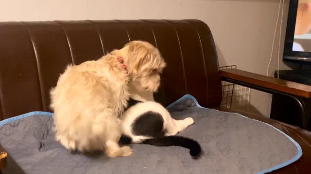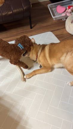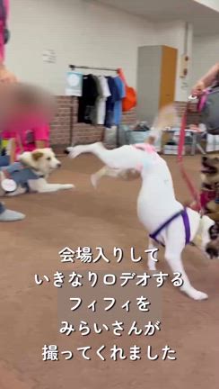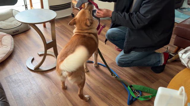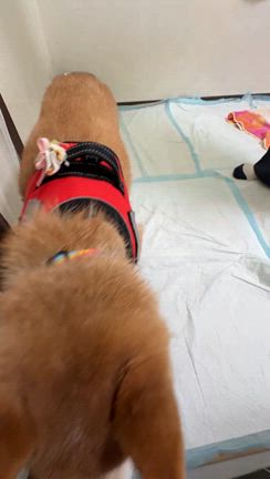 寄り添うジャックさん達と卒犬りみちゃんのお下がり