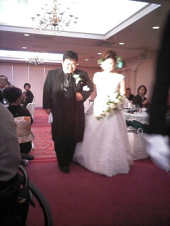 結婚式ですね。僕の音楽生活の中で最も革新的だった岡山でのライブ活動のきっかけを頂いた赤田氏の結婚式です。素晴らしい!岡山のミュージシャンは知らない人は居ないというほどの演奏活動の多さと多才さでサックス奏者にとどまらず歌や演劇までこなすまさにステージの鬼!という感じの素晴らしい方です。新婦もやはり音楽仲間でこれからの活動がとっても楽しみです。今後とも宜しくです。