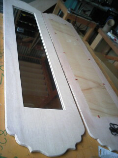 今回は120センチ×35センチくらいで中の鏡を裏側から取り外せてペイント後にまた取り付け出来る様に改良された新作です。
