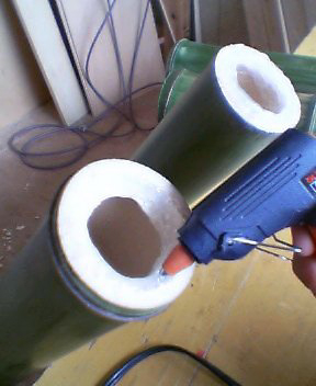 今回結構大きめの竹も仕入れたのでちょっと吹きにくいかも知れません(個人差が有ります)がグルーガンで下地を作る事にしました。