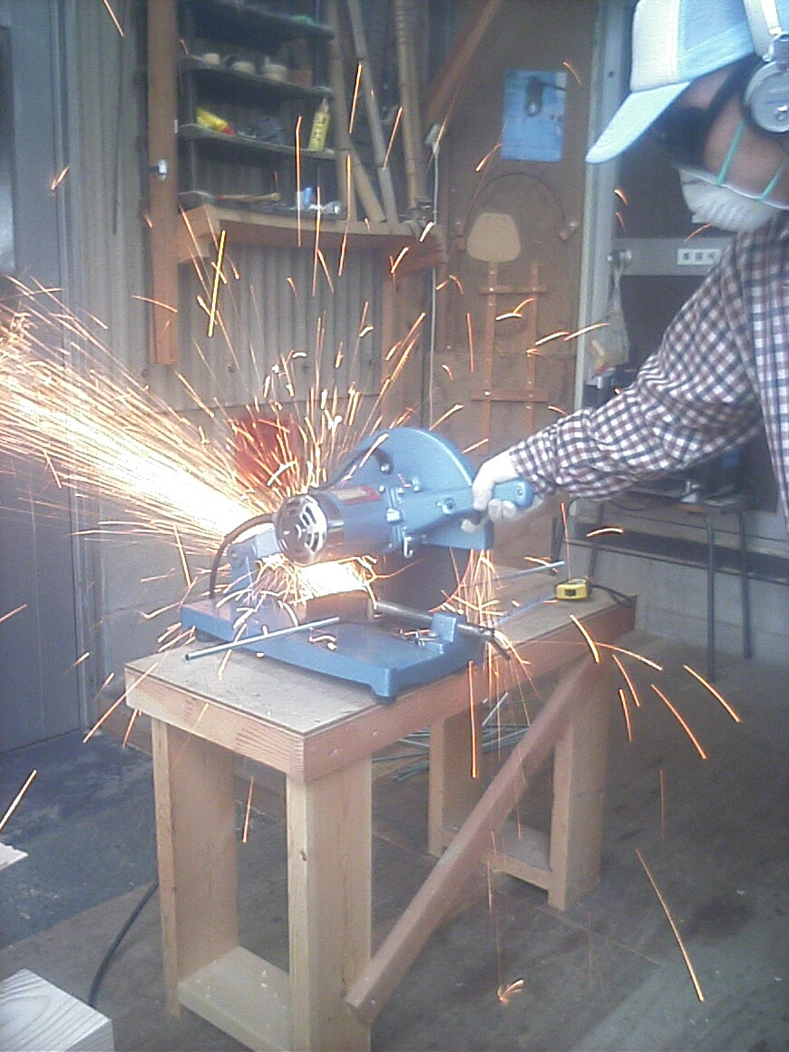 貫通用ボルトのカット熱いです。切った部分は溶けてくっつき冷えてから叩いて取り当然ボルトのネジ山は潰れているのでヤスリかけとニッパーなどでの調整でナットが入るようにします。何度も首筋に火の粉が飛んできて飛び上がり、手首に入って切断中に手を離し(恐い)。足に落ちてきて靴と靴下は焦げて穴が空き足の甲に焼けども(小さく)しました。完全装備でも幾らか隙間は有り、飛んでくる火の粉が気になって緊張しっぱなし。いつまでかかるかわからない作業はなかなか根性がいりますね。