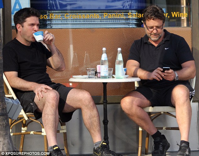 Man of Steel: Russell Crowe showed of his hard earned physique in a pair of tight shorts as he ventured out to meet a mystery man for coffee in Beverly Hills on Friday