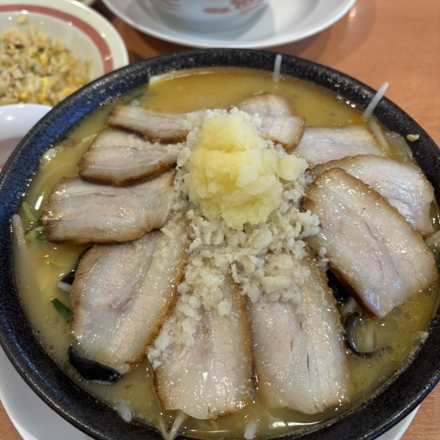 後味あっさりめの非乳化スープにワシプリッとした食感の太平打ち縮れ麺♪ ミッチミチの豚にニンニクをまぶしてとっても美味しくいただいています! 毎度のように滝汗を拭いながらの完食腹パンパンです😋