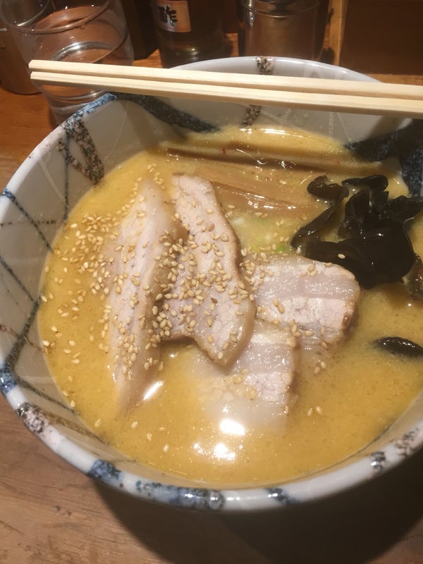 具材は、チャーシュー、ワカメ、白ゴマが入ってます。