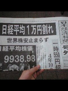 日経平均が一万円を割り込むなんと号外がでてました。一見、直接関係ないように思える株価も生活に密接に関わっています。為替相場も大幅な円高になっています。ドルが1日で2円円高になりました。オーストラリアドルに至っては6円も円高に。サブプライム問題はかなり根が深そうですね。