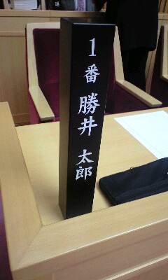 写真は議席です。沢山の方の想いを持ってこの議席で4年間活動をします。